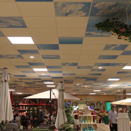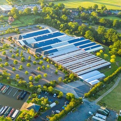 We have solar panels fitted to our garden centre roof. We have 2560m2 of photovoltaic panels on the garden centre roof generating 300,000 kwh of electricity in an average year.